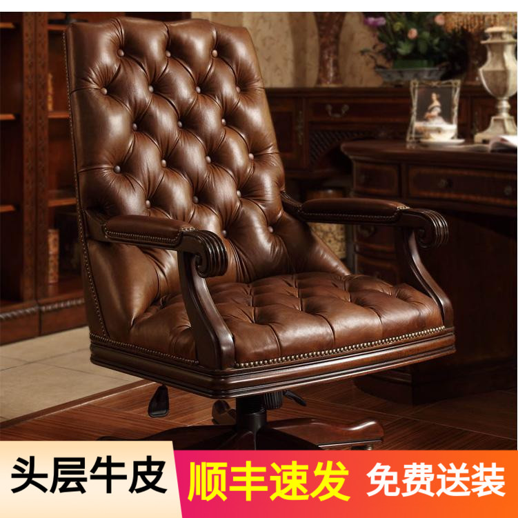 美式电脑椅欧式老板椅大班椅真皮实木家用办公升降转椅舒适书桌椅