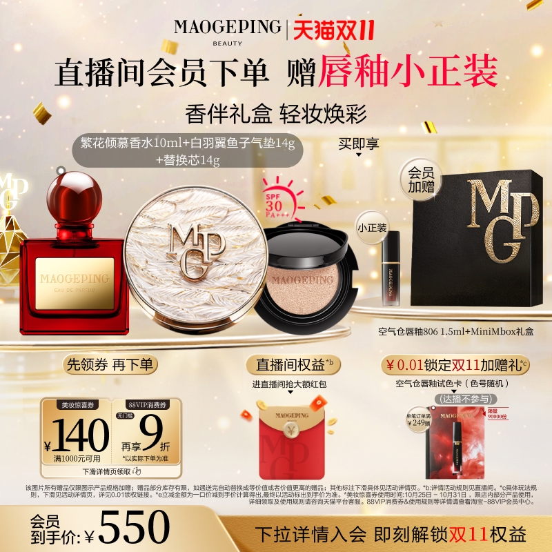 【礼物】毛戈平气垫香水彩妆礼盒黑白羽翼气垫女生化妆品套装正品