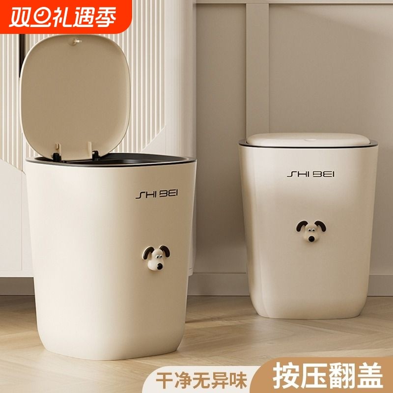 垃圾桶家用客厅卫生间厨房卧室大容量奶油风按压带盖纸篓筒卫生桶
