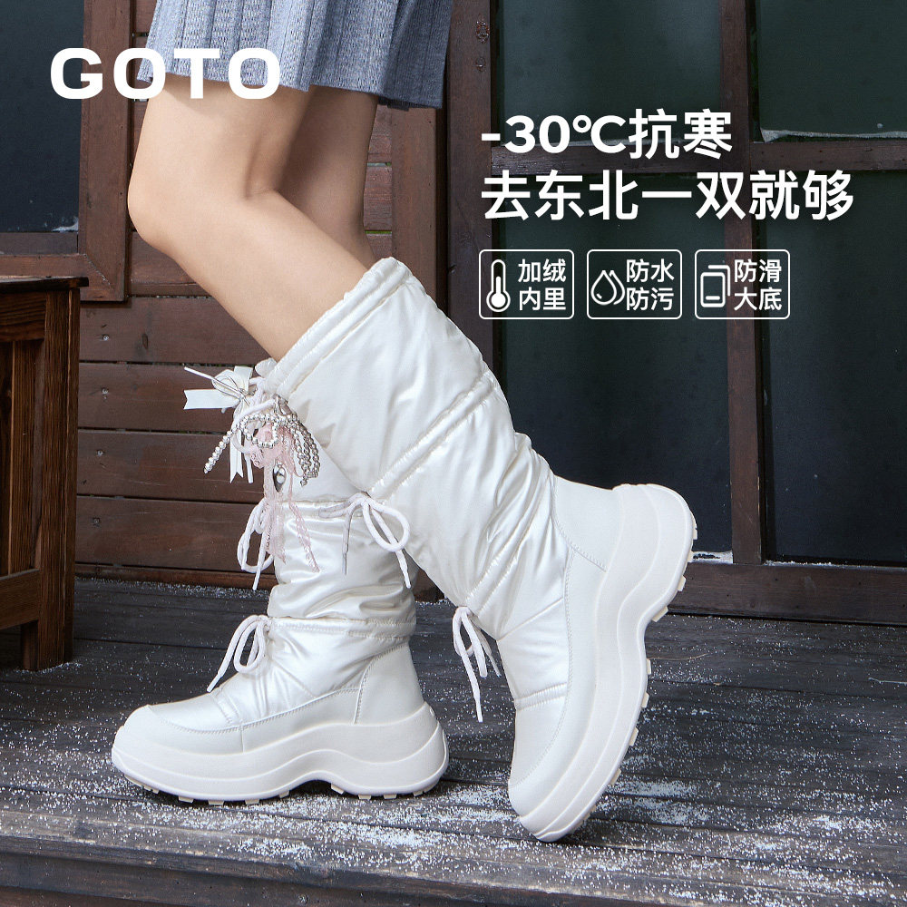 GOTO高筒户外加绒雪地靴子防滑防水女鞋冬季厚底轻便保暖东北棉鞋