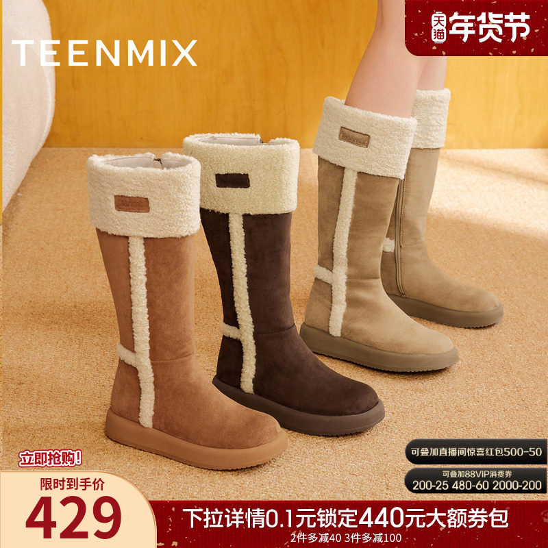 天美意厚底加绒保暖雪地靴长靴女棉鞋高筒靴子2025冬新款KXD51DG5