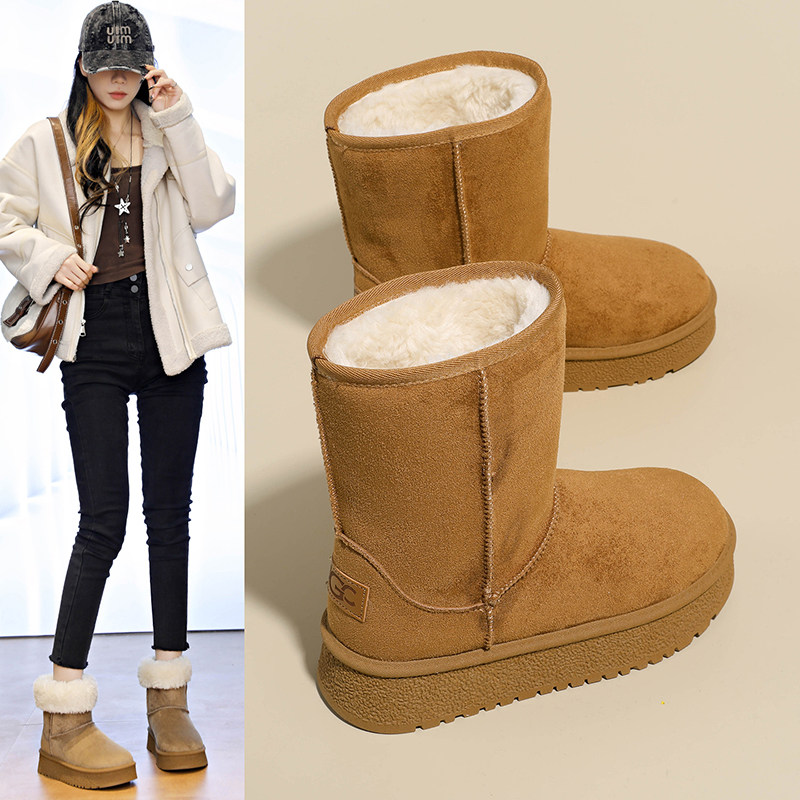 东北加厚保暖雪地靴女防滑大码羊毛靴防水中高筒棉靴长靴子棉鞋女