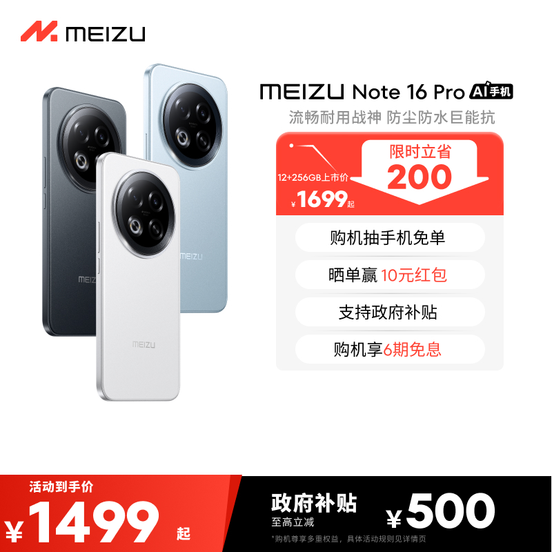 【购机立省200|6期免息】Meizu魅族Note16 Pro AI手机新品官方旗舰店高通骁龙持久续航流畅耐用学生手机百补