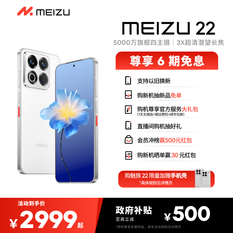 【政府补贴5% 官方正品】Meizu/魅族 22 5000万旗舰四主摄 3X超清潜望长焦 第四代骁龙8s 5G拍照手机AI手机