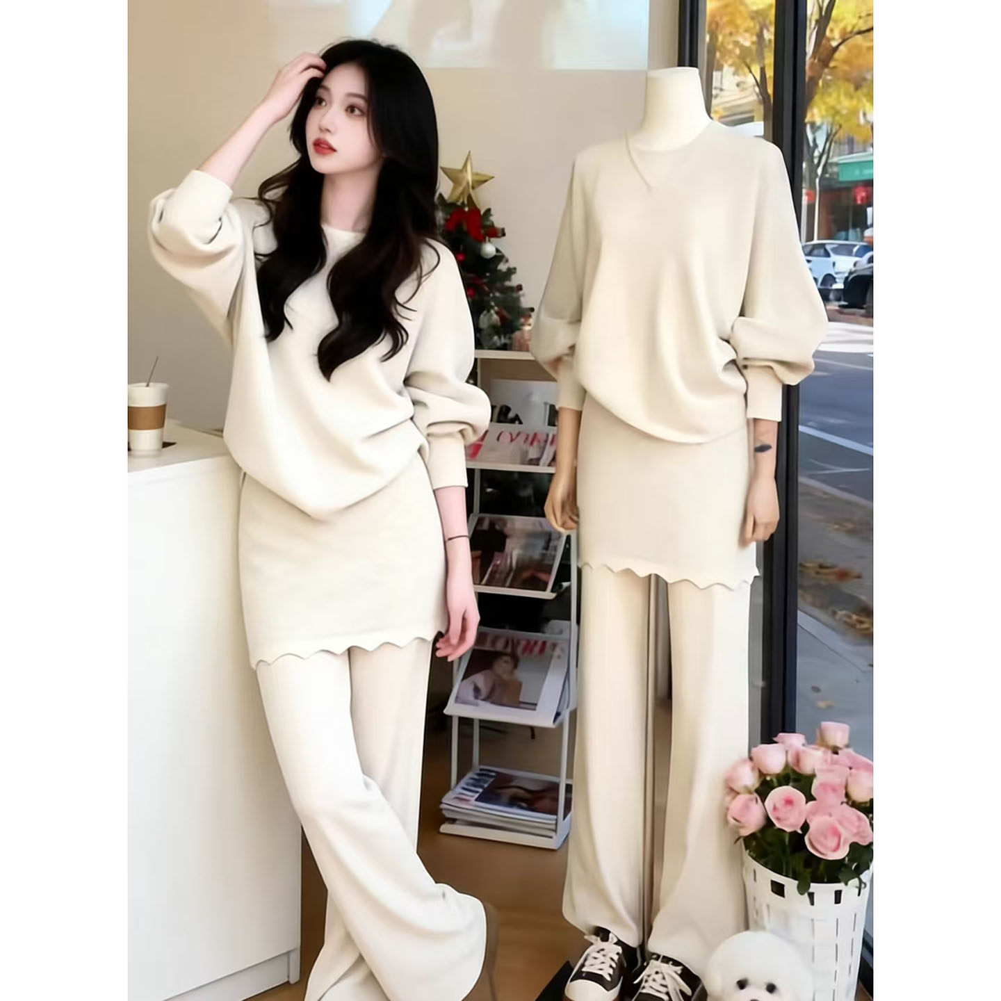 温柔慵懒风宽松加厚减龄针织套装女秋冬新款显瘦毛衣阔腿裤两件套