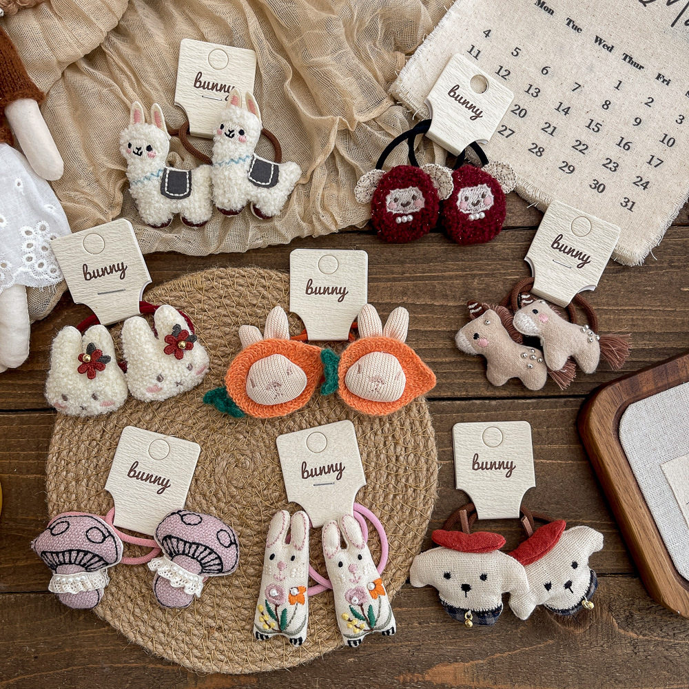 森系布艺新款卡通小羊兔子发圈高弹力不伤发宝宝皮筋萌趣可爱发绳
