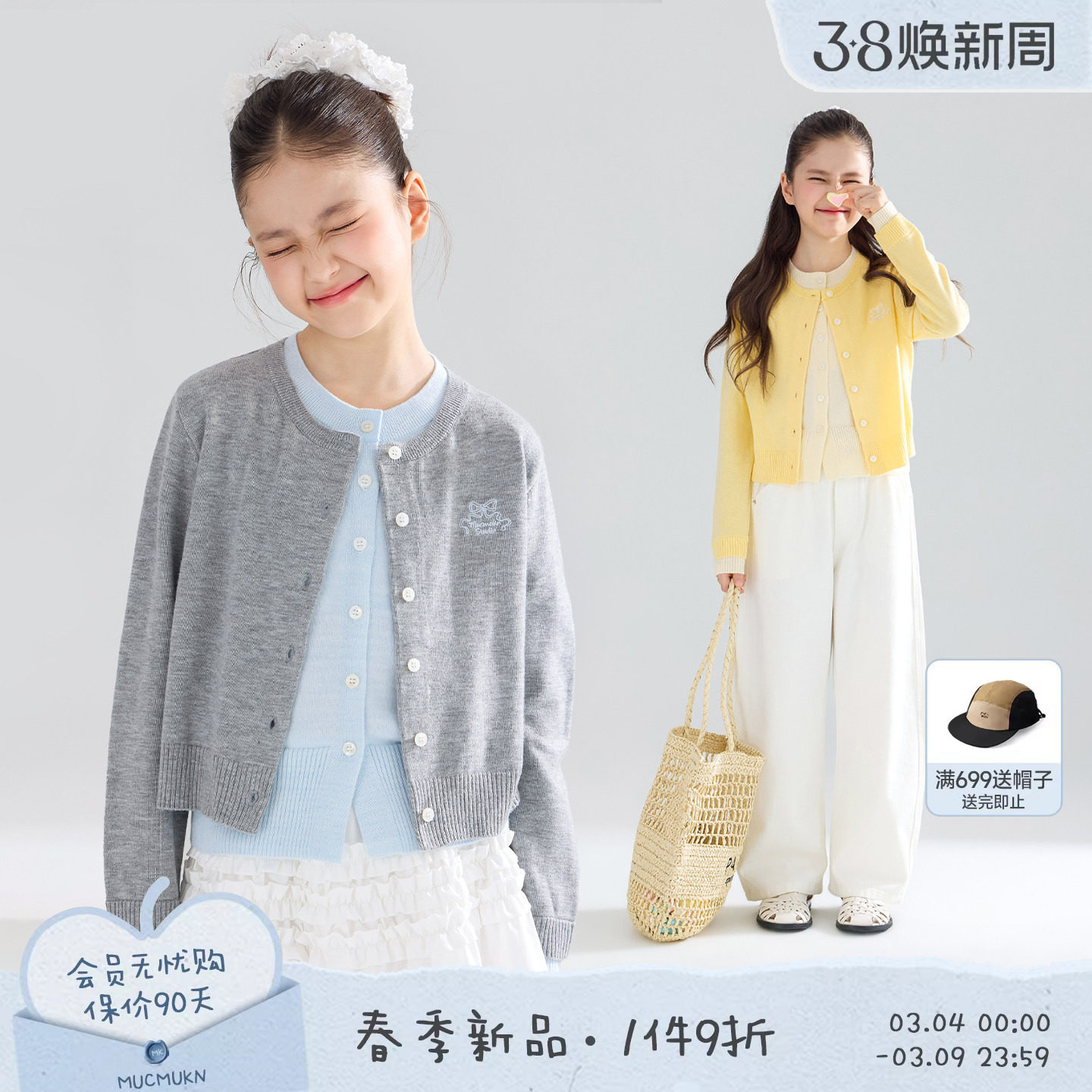 MUCMUKN【南法游春】早春假两件羊毛混纺蝴蝶结毛衣开衫女童26春