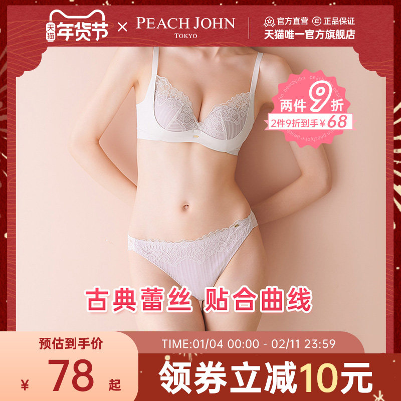 PEACH JOHN/蜜桃派花样蕾丝性感女士聚拢饱满简约文胸内裤套装