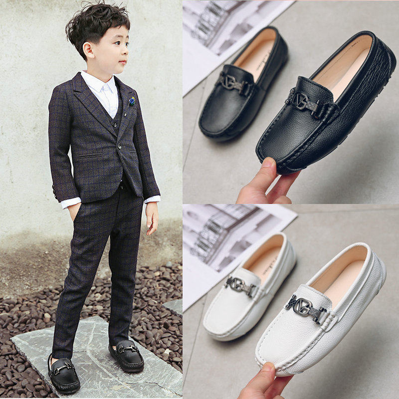 儿童豆豆鞋春秋男童黑色皮鞋真皮软底配西装幼儿园男孩钢琴演出鞋