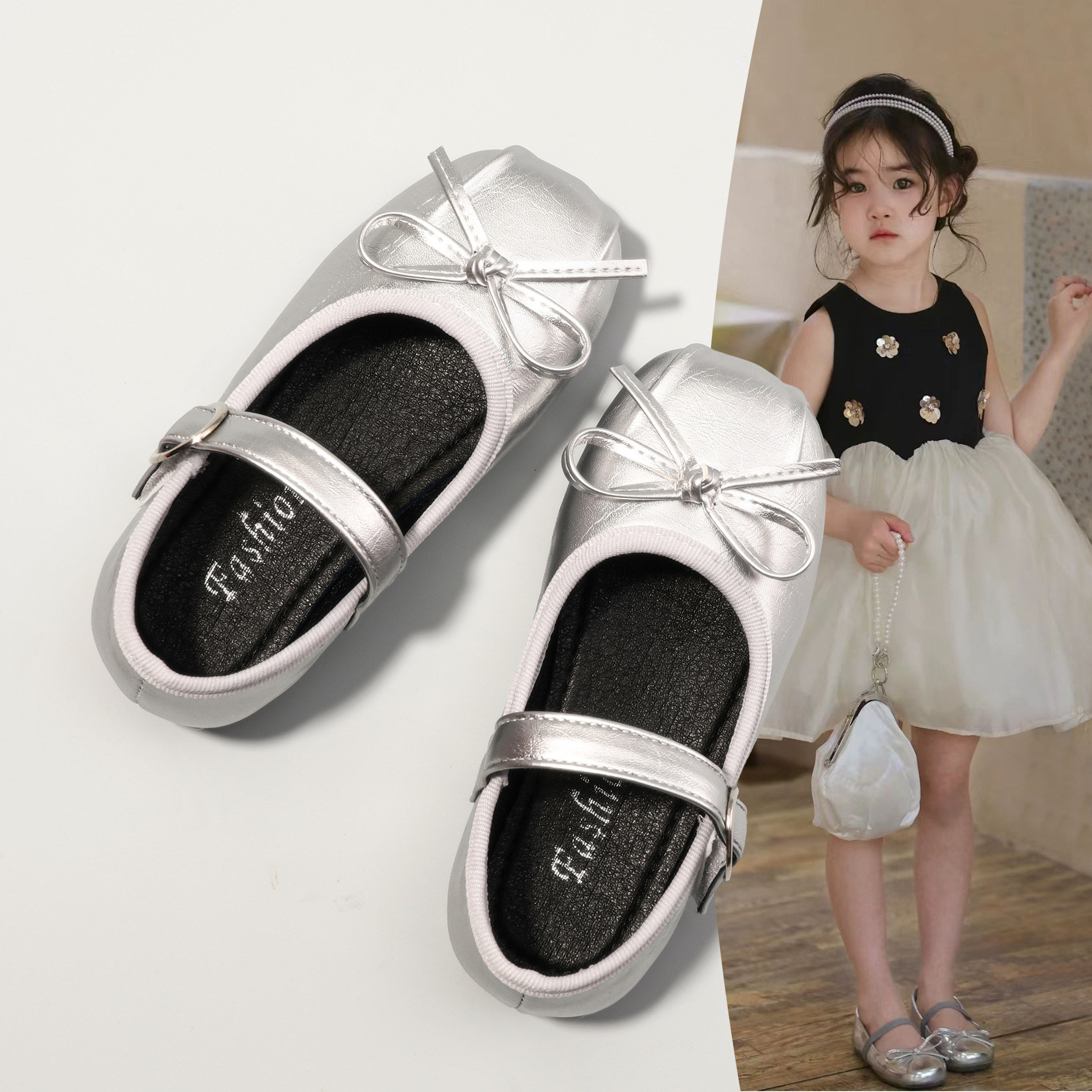 女童玛丽珍小皮鞋浅口单鞋软底2025春秋季新款洋气银色儿童豆豆鞋