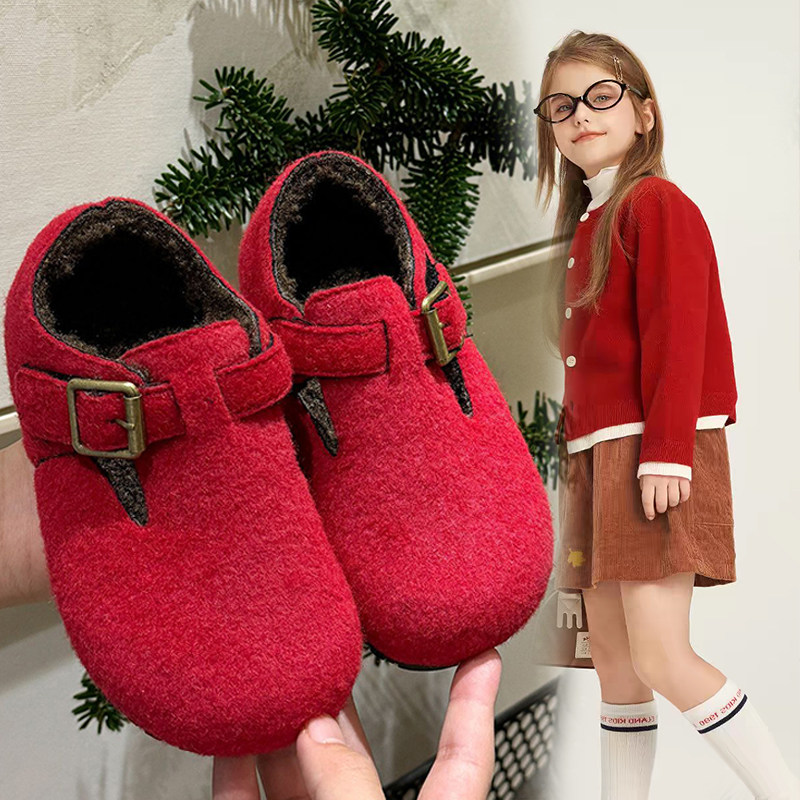 女童勃肯鞋2025冬季新款加绒棉鞋新年红色儿童豆豆鞋宝宝软底鞋子