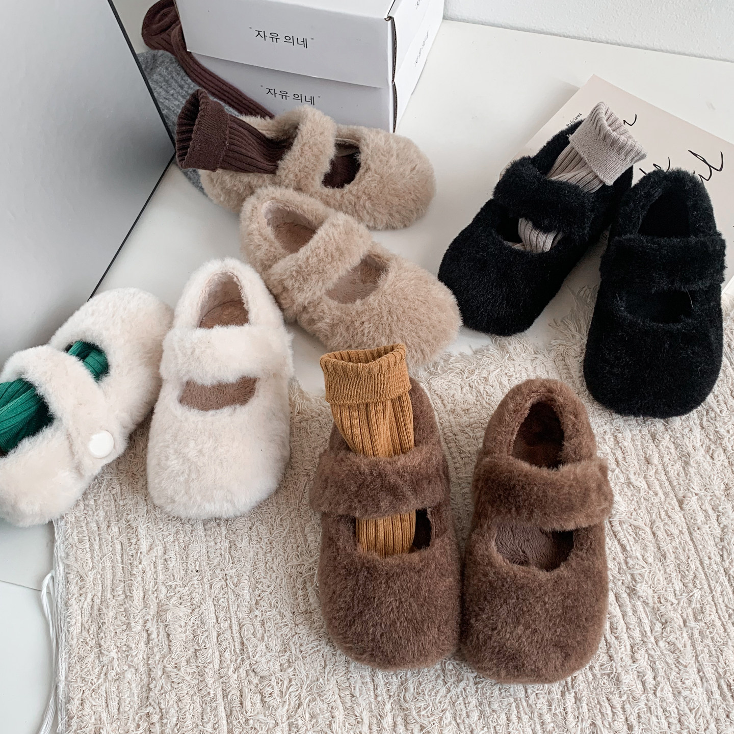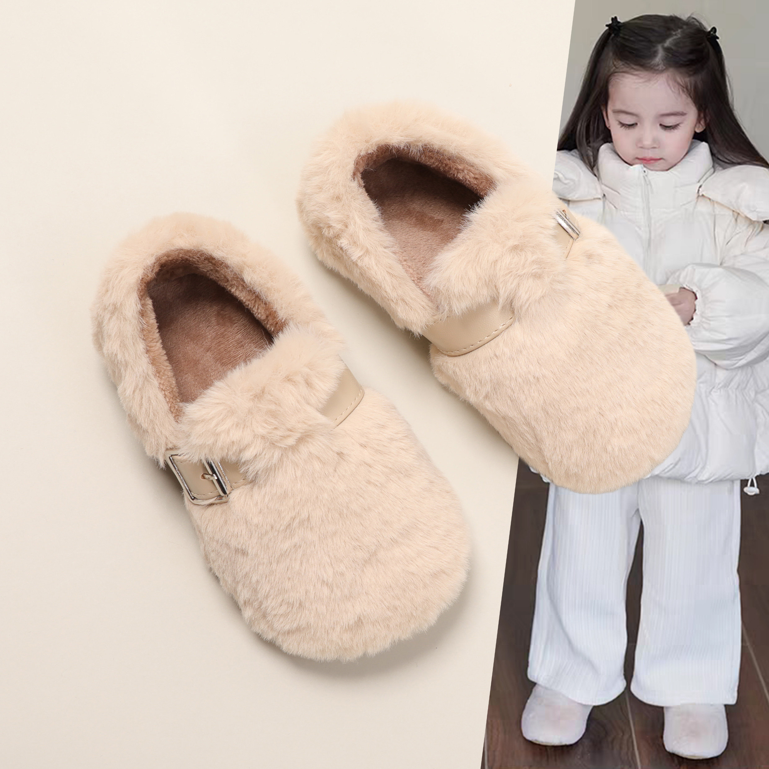 慕葵家女童毛毛鞋秋冬新款加绒宝宝棉鞋保暖甜美幼儿园儿童豆豆鞋