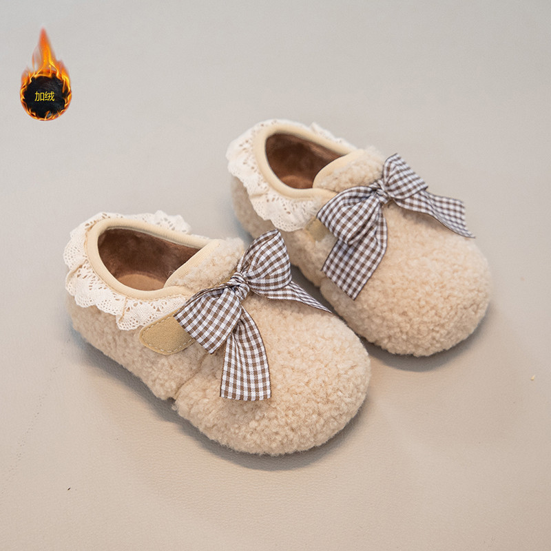 女童羊羔毛棉鞋2025冬季新款儿童豆豆鞋加绒小女孩二棉宝宝毛毛鞋