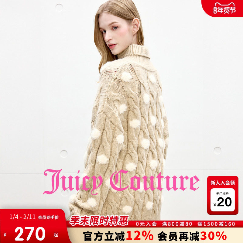 Juicy Couture橘滋针织衫女2025年秋冬新款绒感提花高领中长毛衣