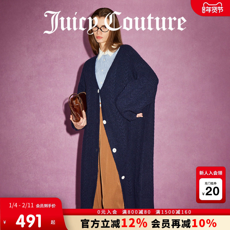 Juicy Couture橘滋春夏新款至日慵懒绞花过膝长毛衣外套女