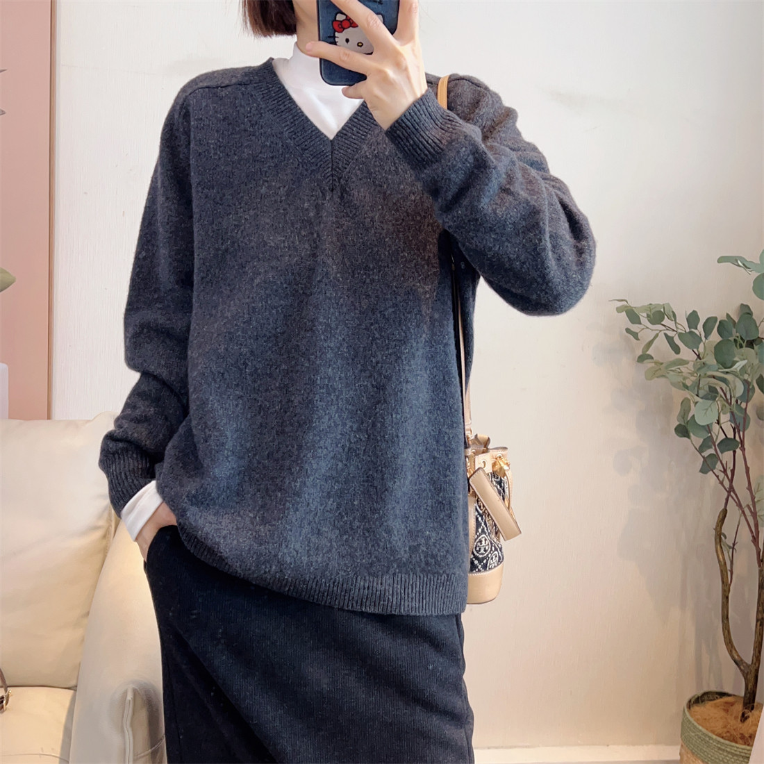 - v领羊绒衫女