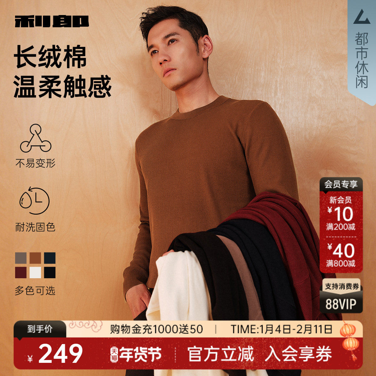 【长绒棉】利郎官方针织衫男纯色圆领毛衫男士2025冬季新款毛衣