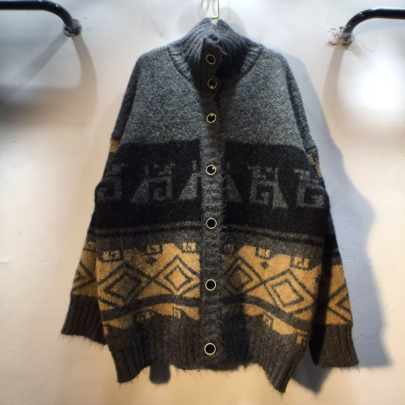 GESCAS 个性异形扣宽松外套慵懒羊驼毛毛衣拉绒长毛衣开衫针织衫