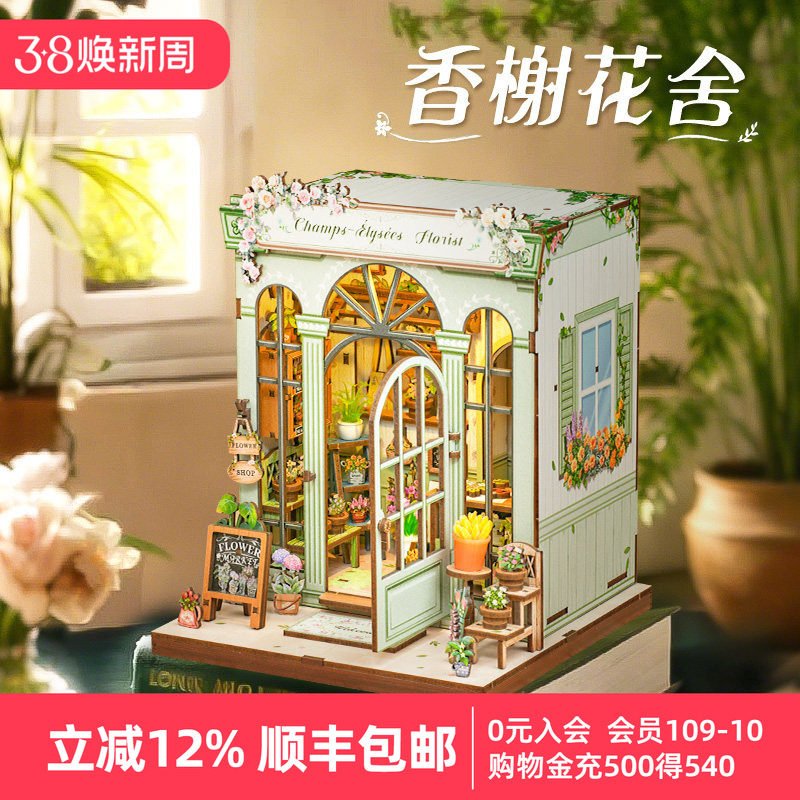 CuteBee香榭花舍手工diy花店小屋城市漫步木质拼装模型新年礼物女