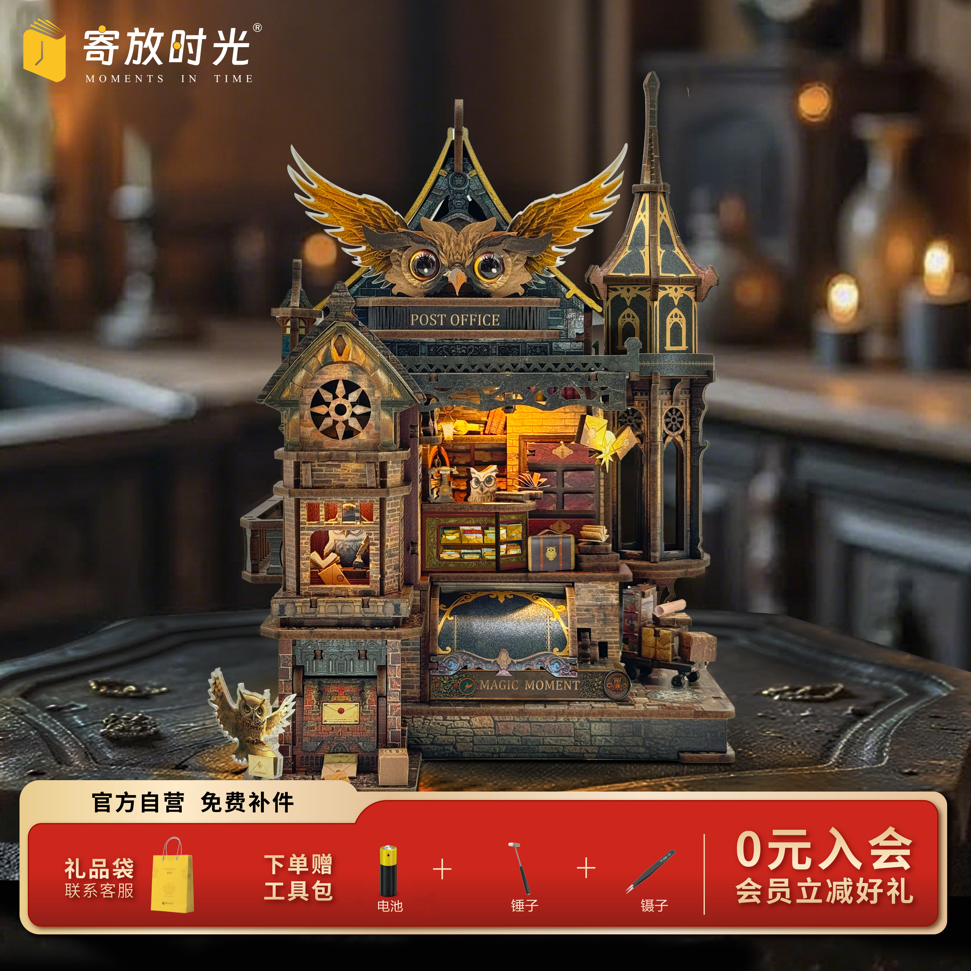 寄放时光西西弗猫头鹰邮局木制拼装传动模型手工diy小屋新年礼物