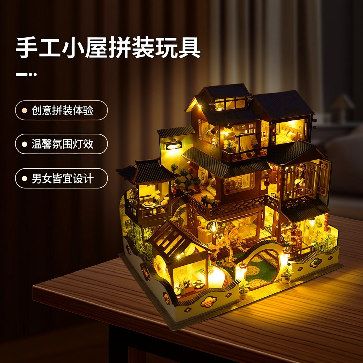 diy小屋别墅韵味东方手工拼装房子积木微缩场景模型玩具生日礼物