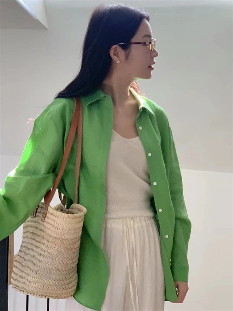- 亚麻衬衫女长袖衬衣