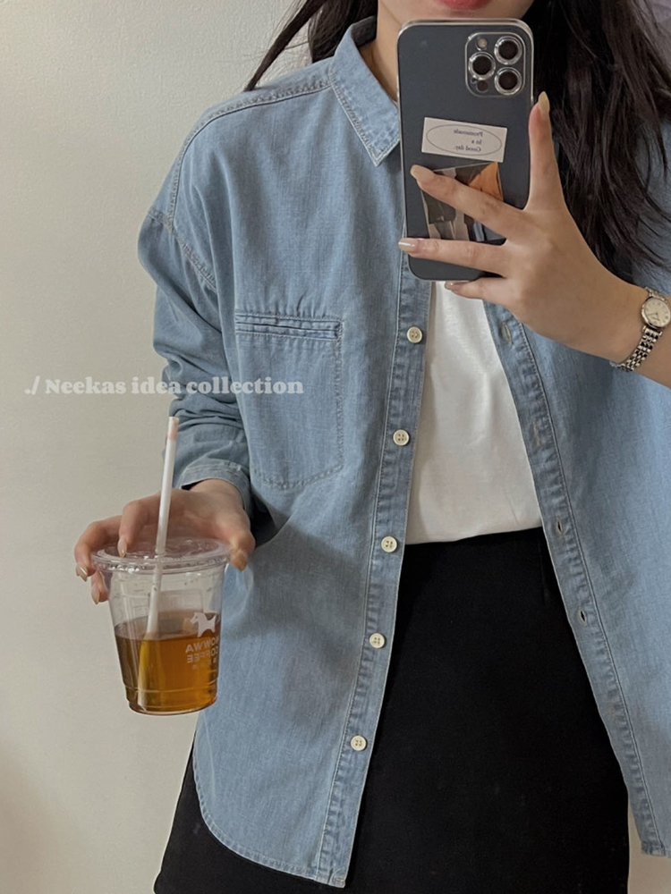 - 宽松薄款牛仔外套女