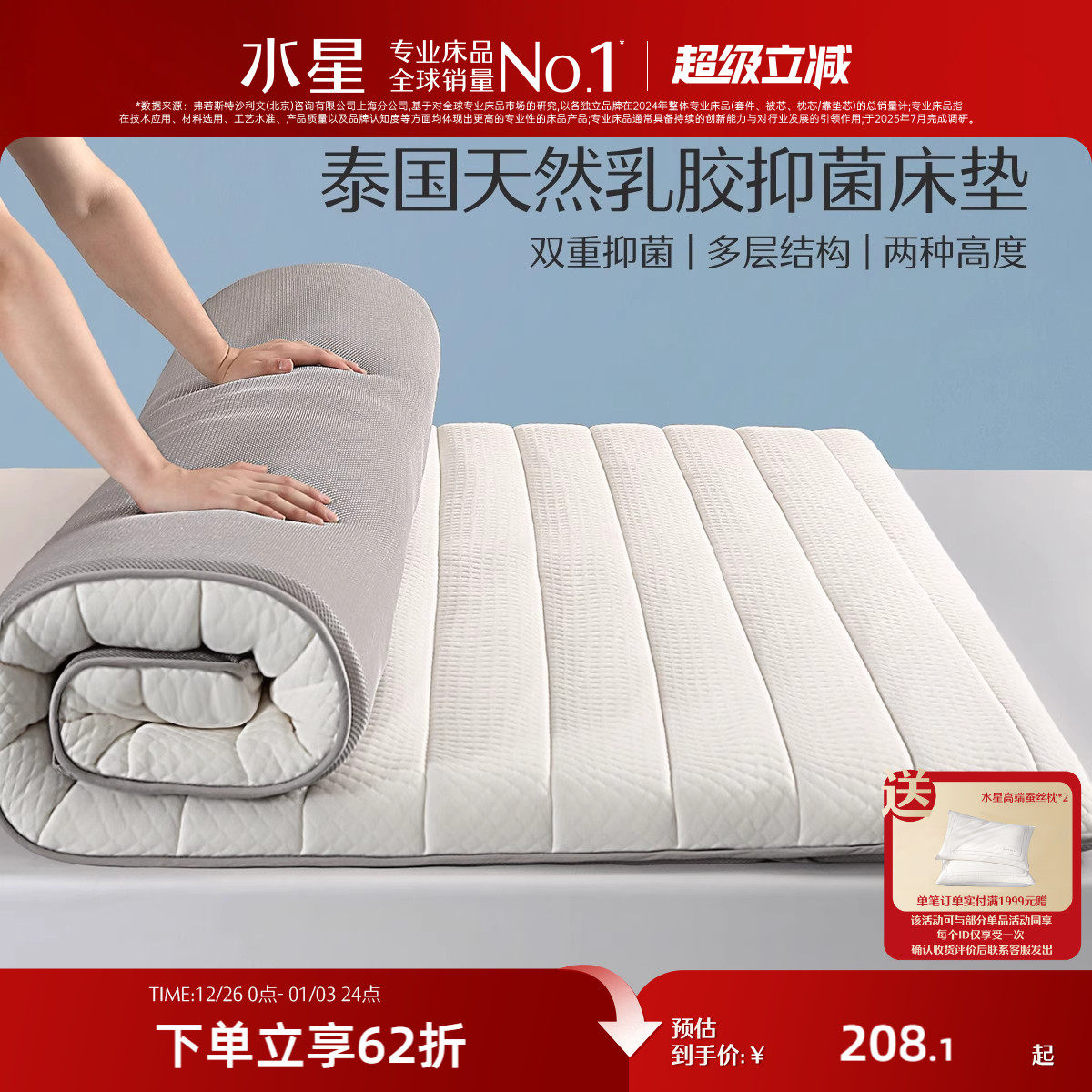 水星家纺大学生宿舍床垫天然乳胶家用垫子加厚款被褥防滑软垫租房