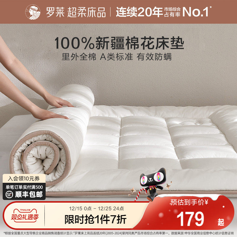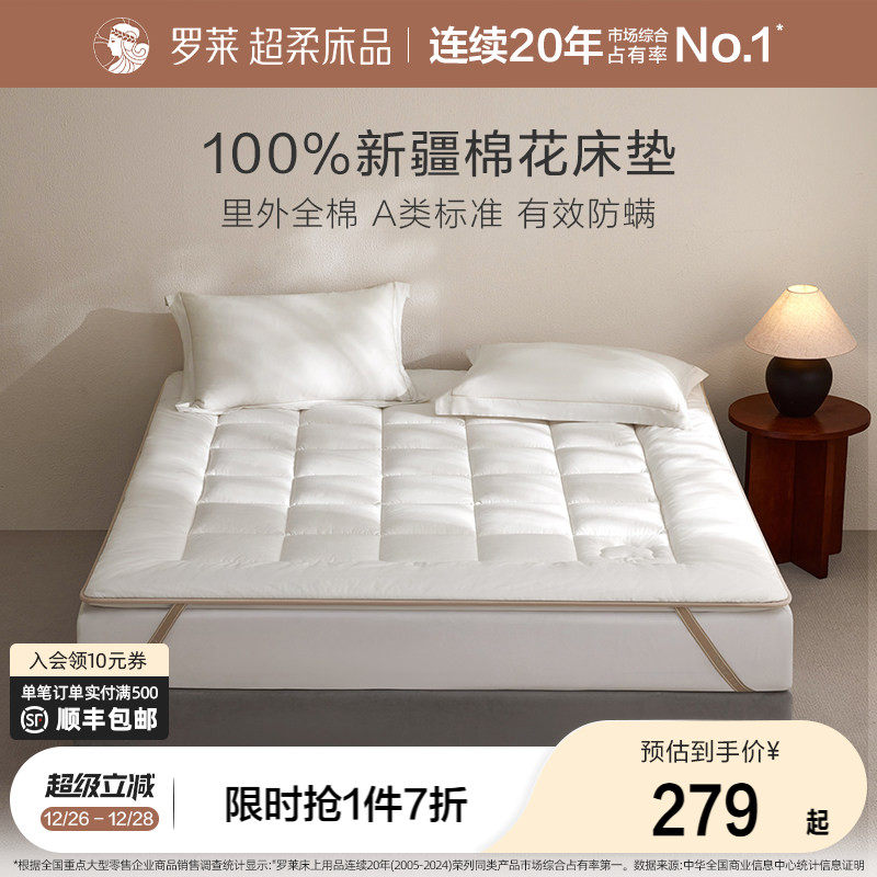 罗莱家纺新疆棉花全棉床垫软垫学生宿舍单人家用榻榻米双人床褥垫