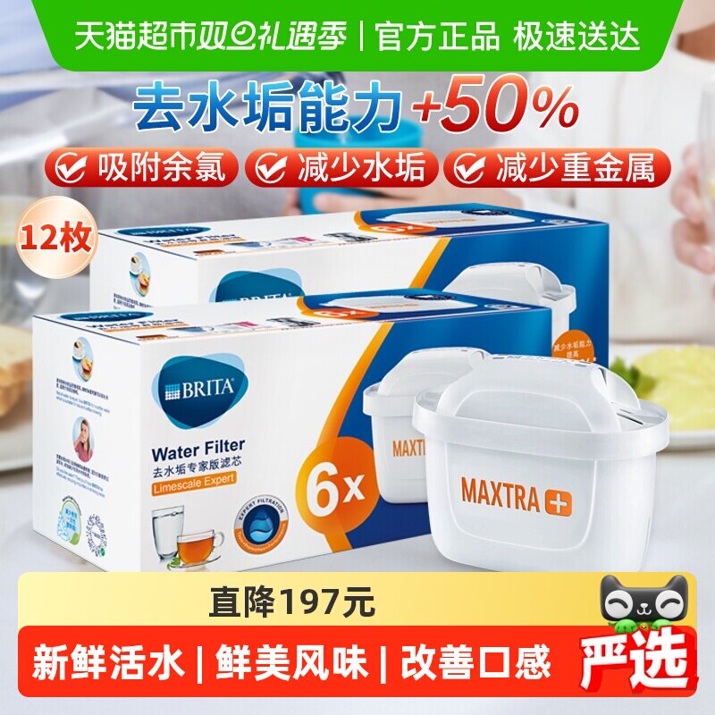 【自营】Brita碧然德滤芯Maxtra滤水壶净水器过滤芯家用 12只装