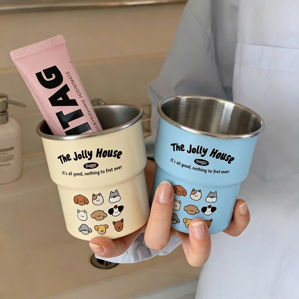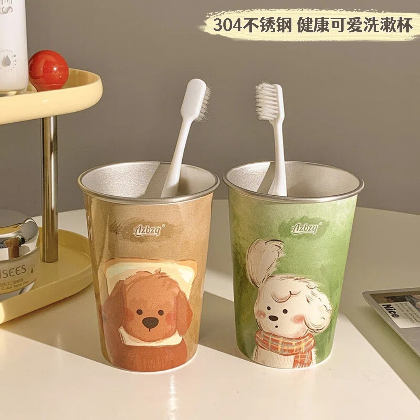 可爱小狗不锈钢漱口杯儿童刷牙杯子洗漱杯简约牙刷杯一对牙缸牙杯
