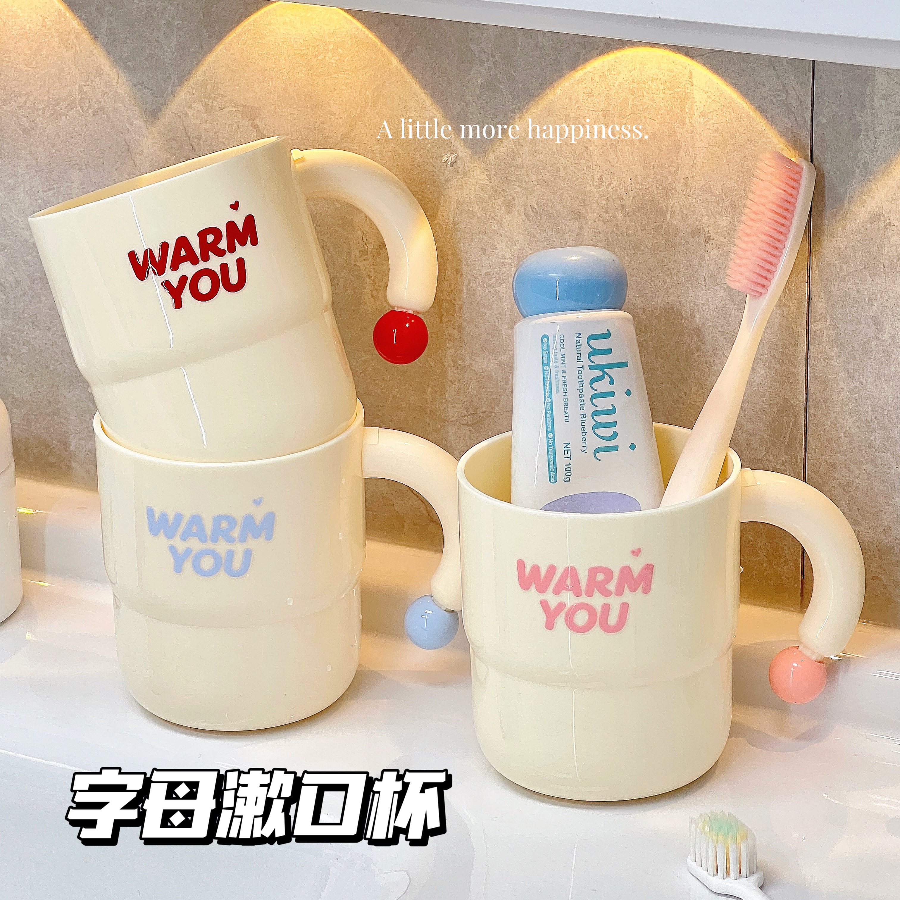 ins风简约家用牙杯奶油风情侣卫生间厕所刷牙杯子洗漱杯牙刷架女