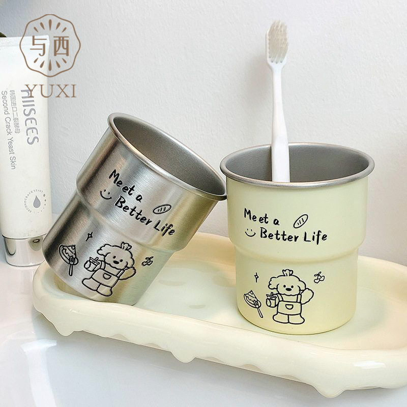 可爱牙刷杯不锈钢漱口杯家用刷牙杯子洗漱杯情侣学生宿舍牙缸牙杯