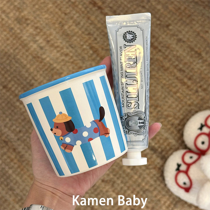 可爱腊肠狗高颜值漱口杯家用刷牙杯子洗漱杯情侣学生宿舍陶瓷牙缸