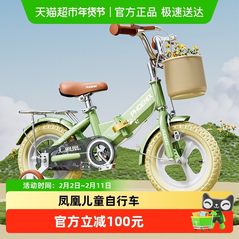 凤凰儿童自行车3岁4岁5岁脚踏车小孩子男女折叠12寸14寸16寸童车