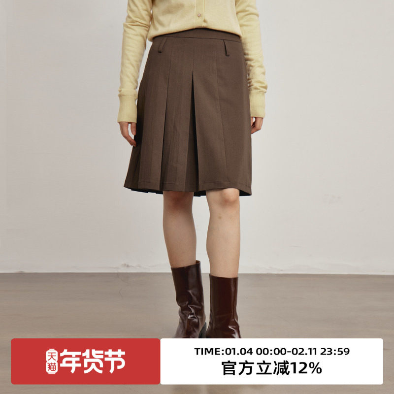 TB百褶裙秋冬新款高腰学院风西装料显瘦A字裙毛呢半身裙短裙裤女
