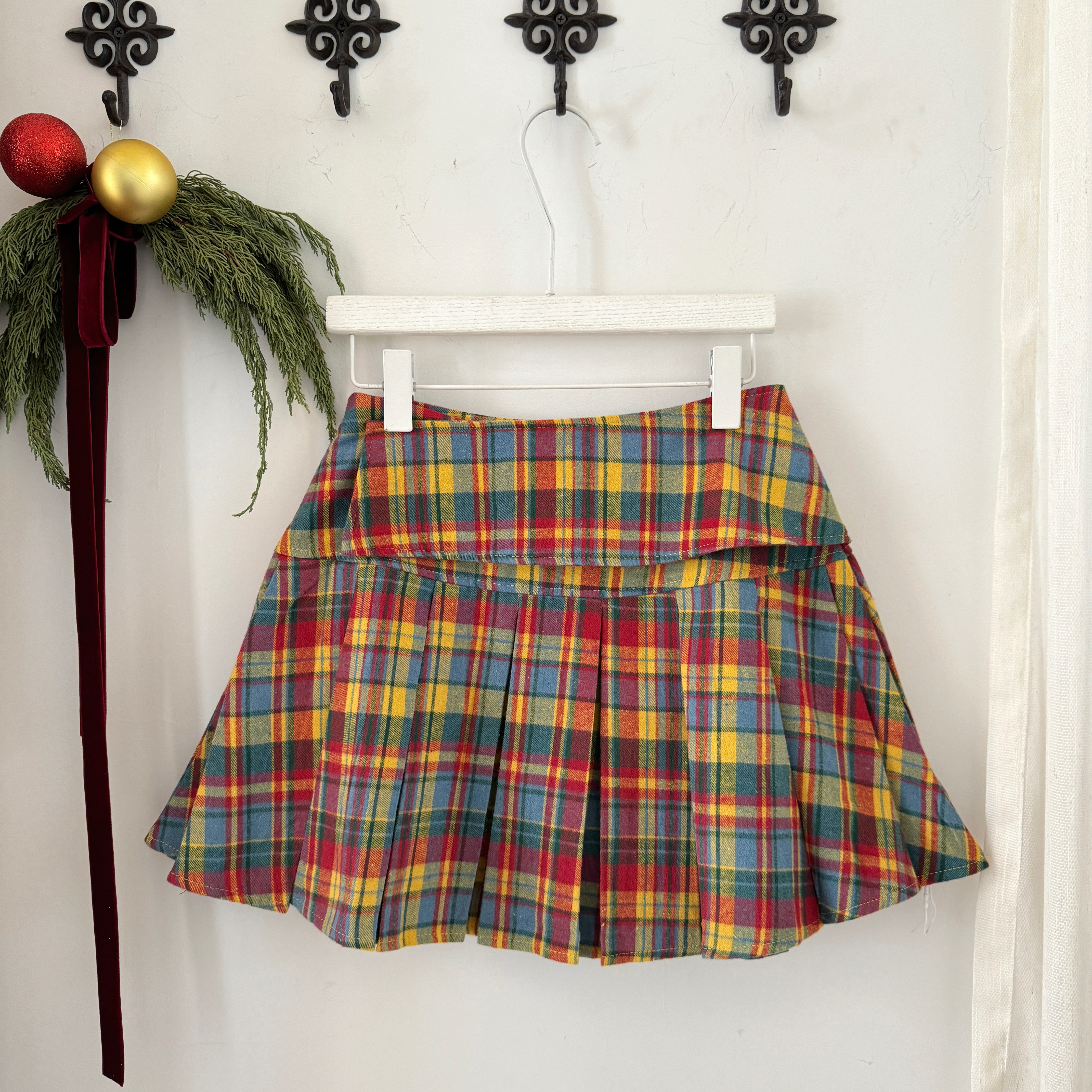 复古毛呢裙格子百褶裙秋冬新款大码美式气质短裙红色a字半身裙女