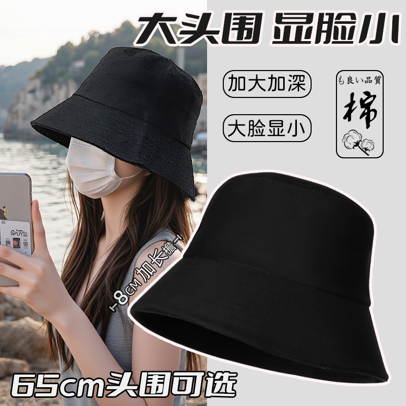 黑色渔夫帽帽子女韩版潮男网红盆帽米色夏天遮阳防晒加大加深棉质