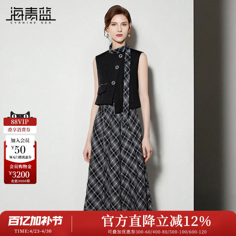 oo&vv新款气质连衣裙通勤套装女2025秋冬遮肉显瘦皮马甲两件套装