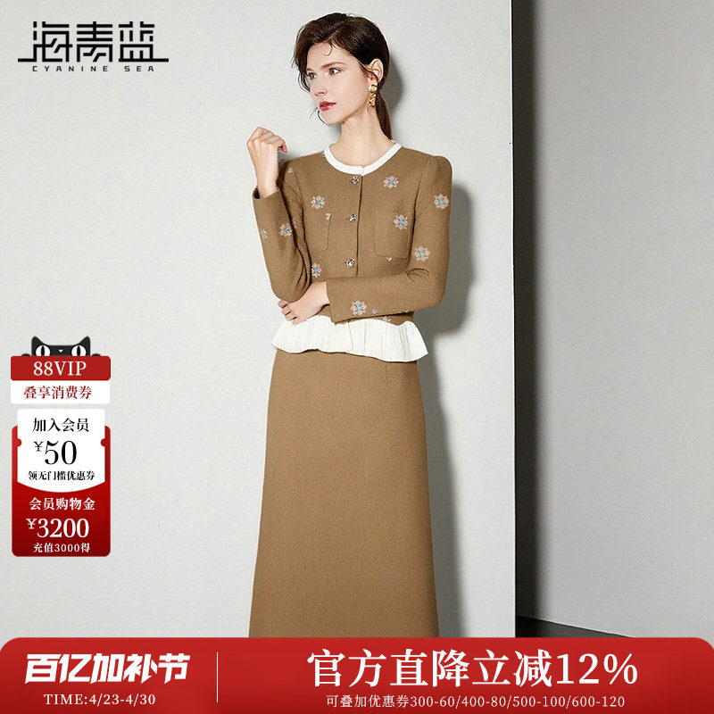 海青蓝 秋冬套装女装2025年新款高级设计感女装半身裙两件套