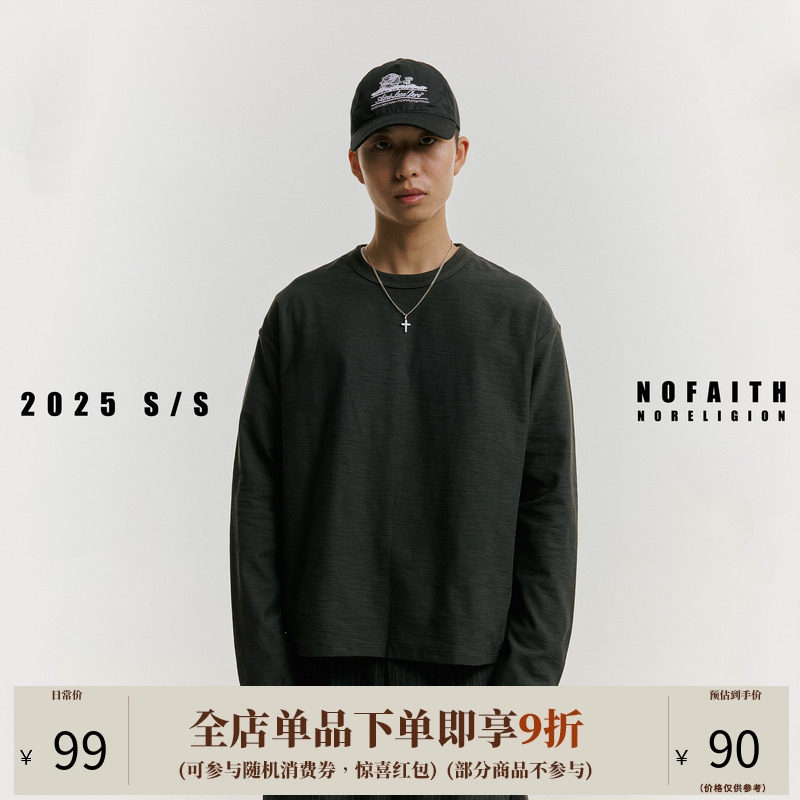 NOFAITH重磅280G竹节棉纯色长袖t恤男秋季宽松圆领打底衫休闲上衣