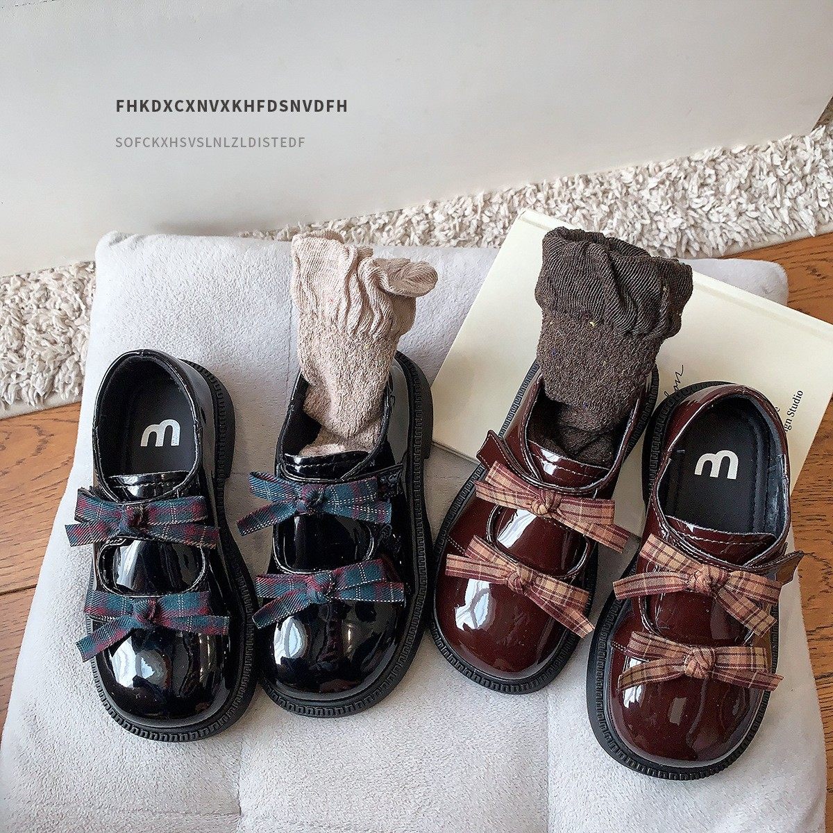 格子蝴蝶结学院风童鞋3-6-12岁儿童小皮鞋女童公主单鞋女孩演出鞋