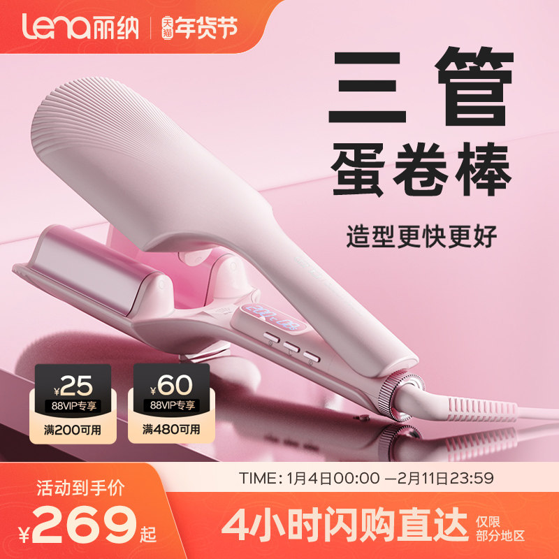 lena蛋卷头卷发棒32mm三管蛋蛋卷棒深v大卷负离子夹板卷发水波纹