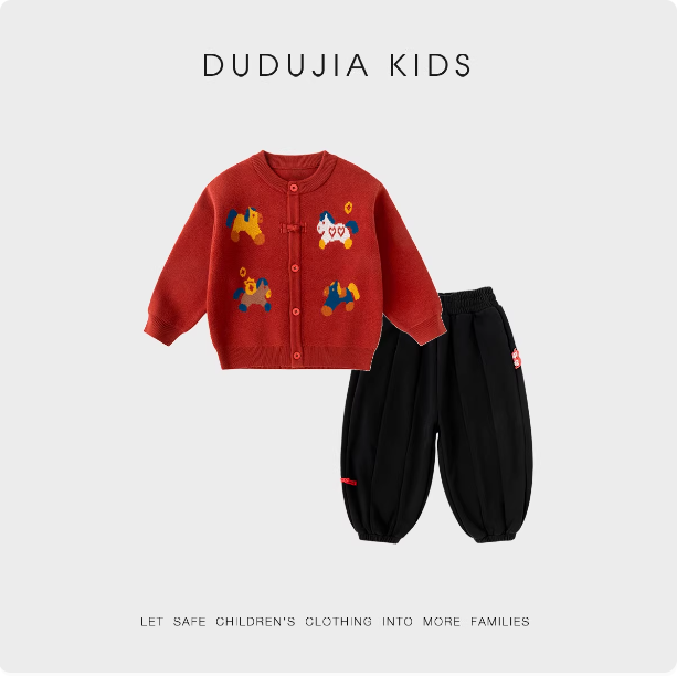 嘟嘟家男童套装拜年服冬季针织毛衣宝宝裤子女童上衣儿童新年装冬