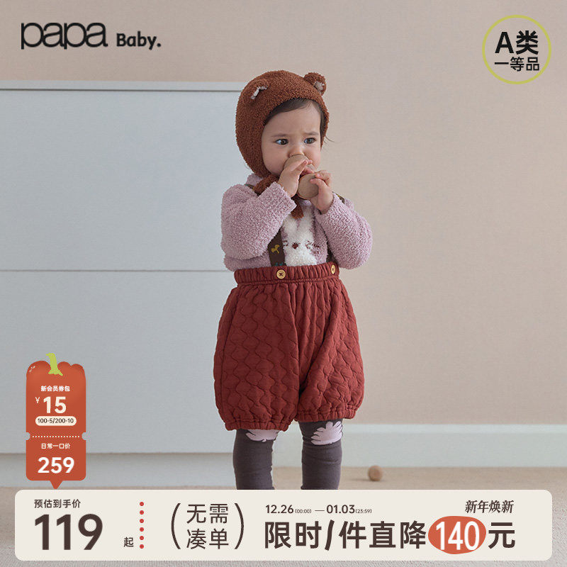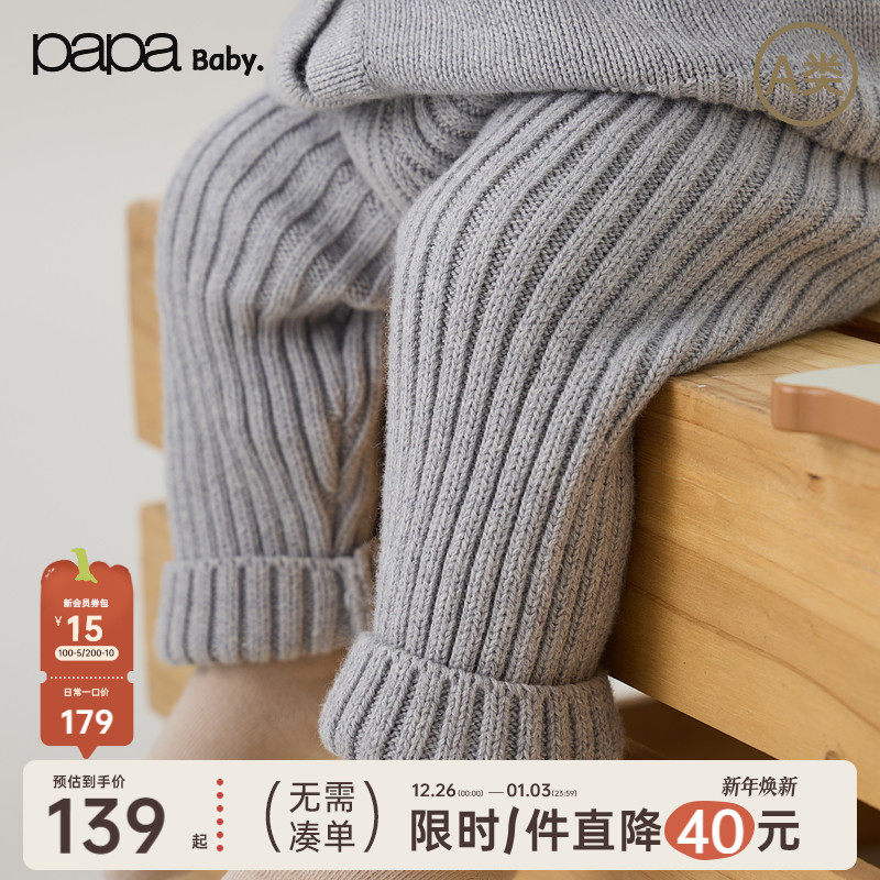 【新品】papa爬爬冬季宝宝裤子男女宝柔软亲肤毛织裤保暖舒适