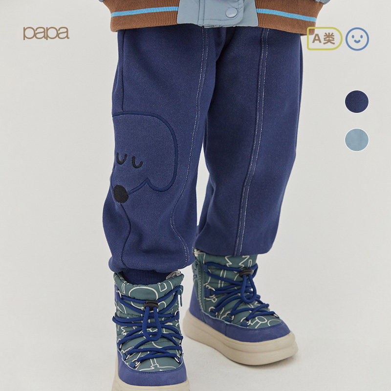 papa爬爬秋冬儿童针织牛仔休闲裤男女宝宝裤子卡通休闲百搭时髦潮