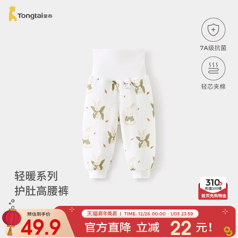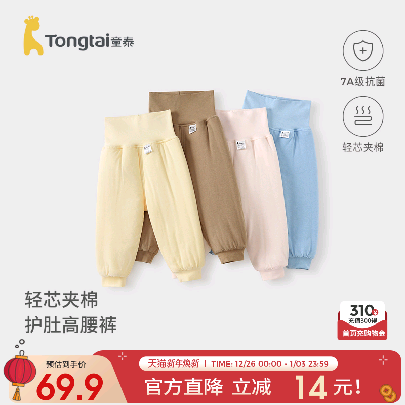 童泰宝宝裤子秋冬季纯棉夹棉男童女童长裤儿童高腰家居裤护肚棉裤