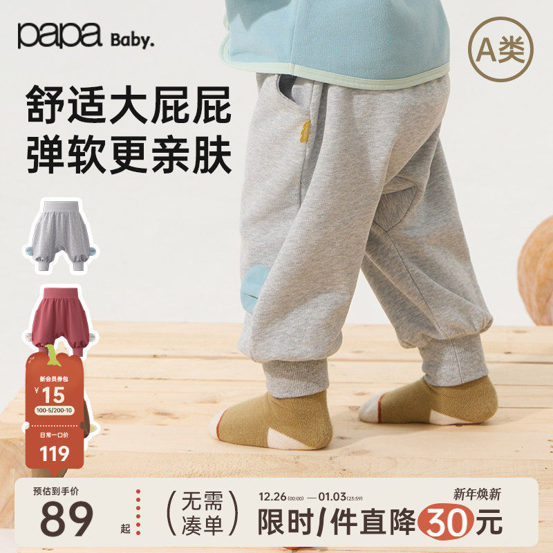 【糯米棉】papa爬爬秋季新品宝宝裤子男女婴儿大屁屁裤宽松束脚裤