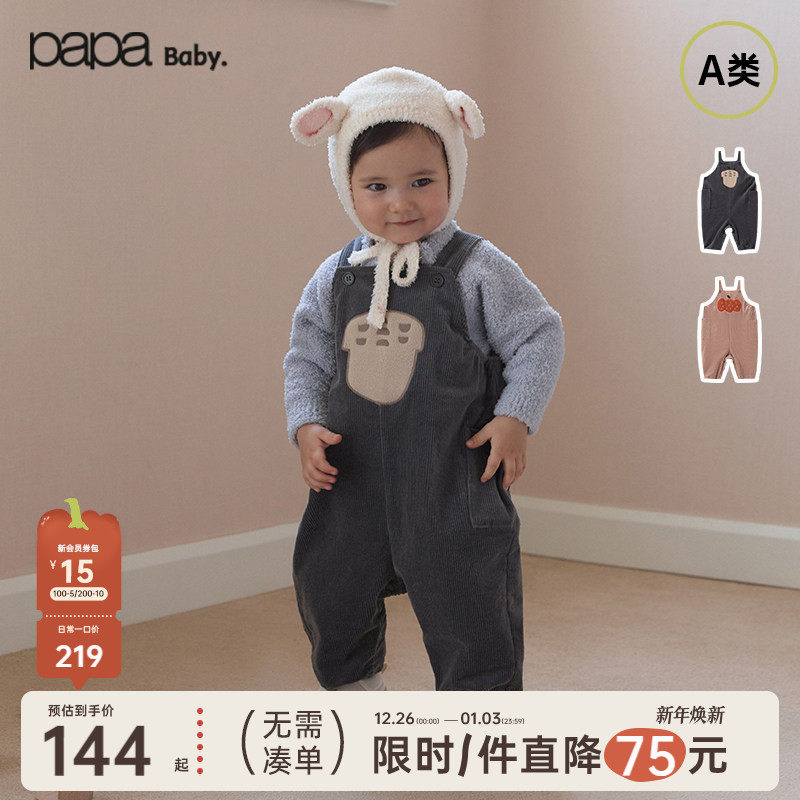 【新品】papa爬爬秋冬季宝宝裤子男女宝灯芯绒贴袋复古可爱背带裤