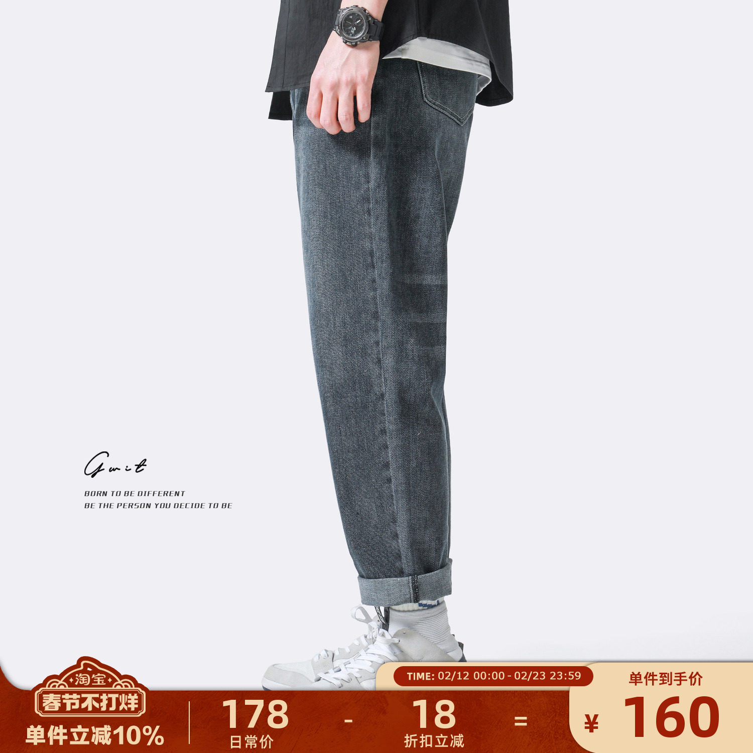 GWIT 12oz中磅石磨洗 春秋新款宽松直筒微弹休闲潮流小脚牛仔裤男
